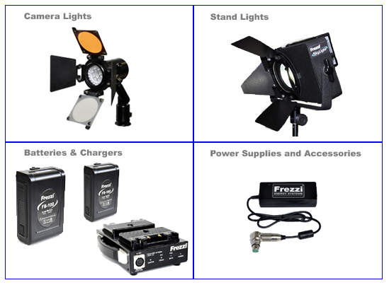 de iluminación, baterías para cámara, cargadores y alimentación.