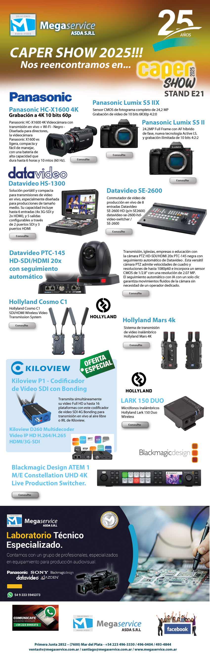 Megaservice ASDA S.R.L Mar del Plata - Primera Junta 2852 - Tel/Fax: +54 223 496-3330 / 496-0404 / 493-4844 - Mail. ventastv@megaservice.com.ar