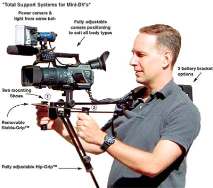 el Stable-Cam opera su cámara Mini-DV y Micro-Fills desde una simple